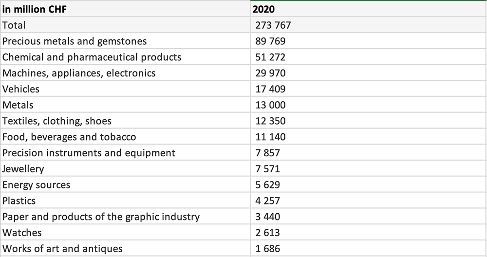 Chart 3: Imports by goods for Switzerland in 2020, Import, Export | Federal Statistical Office (admin.ch), consulted 03/12/2021.