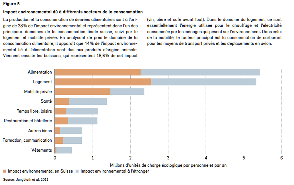 The ecological footprint of the Swiss is equivalent each year to three Earths [17]. The environmental impact of the Swiss population is largely dependent on the lifestyle in hegemony.