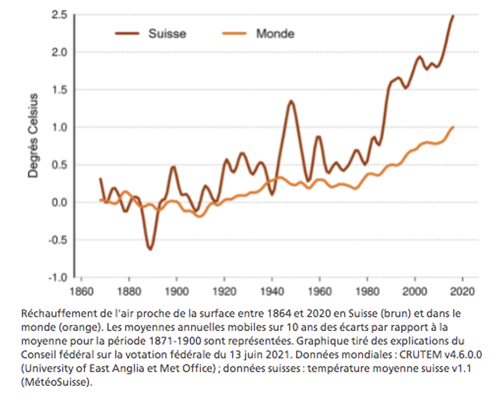 Chart 5: Curve of the global temperature of Switzerland compared to the global average between 1860 and 2020, Federal Office for Weather and Climatology, View article, consulted 03/12/2021.