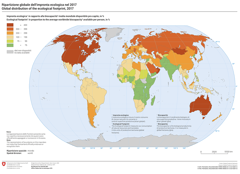 Map 1: Map of the Global distribution of the ecological footprint, 2017, Global distribution of the ecological footprint (World) | Map | Federal Statistical Office (admin.ch)