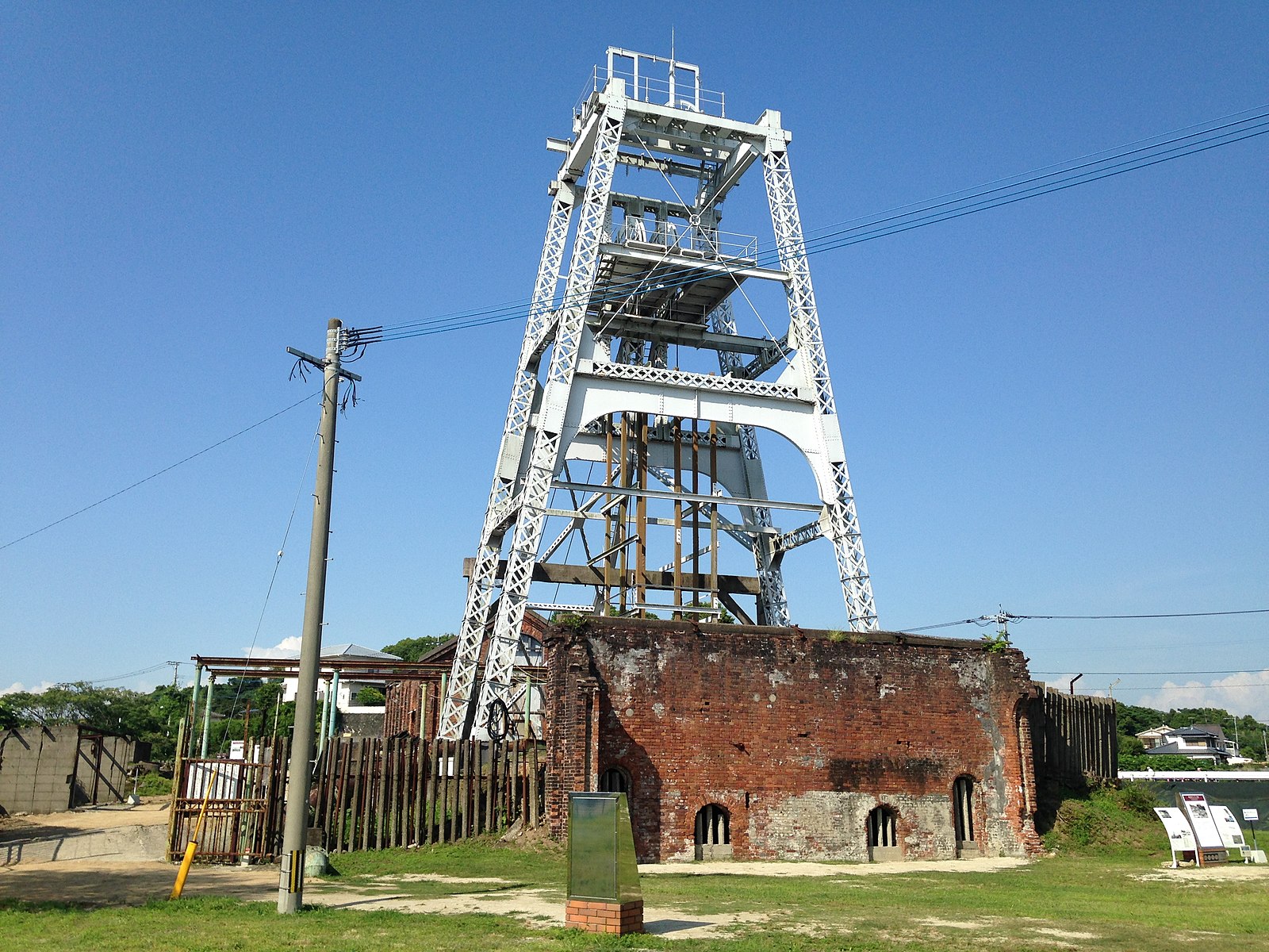 [Fig2] Soranomimi, Miyanohara Pit of Miike Coal Mine (Southwest)/ 三井三池炭鉱宮原坑の第二竪坑櫓とデビーポンプ室壁, 10 June 2016, source: Wikimedia.org. The Miike Coal Mine is one of the biggest mining sites of Japan.
