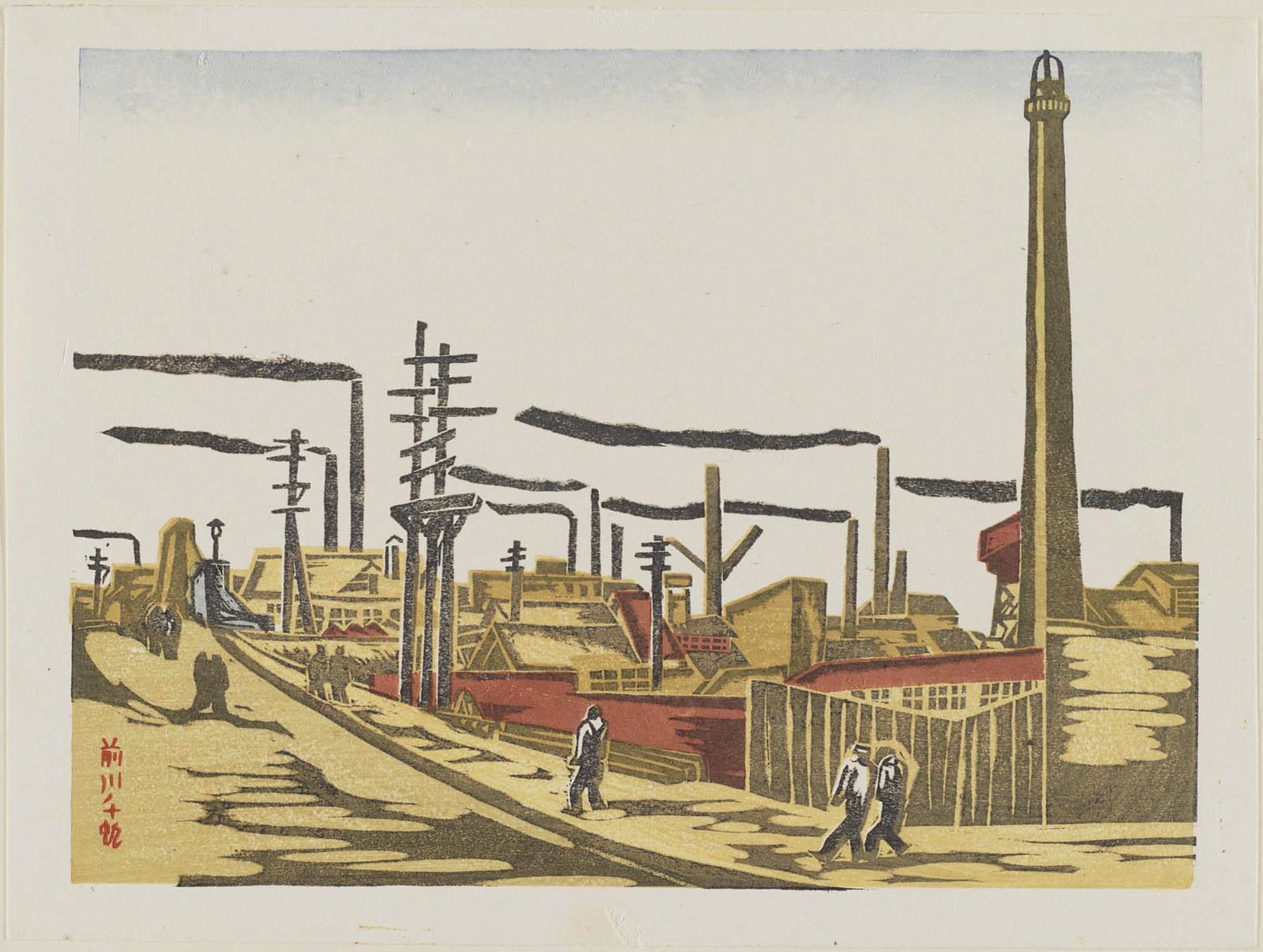 [Fig5] Maekawa Sempan (1888-1960), Factory Street at Honjo (Kōjō Chidai Honjo), in: 15 Scenes of Last Tokyo, 1930’s, source: ja.ukiyo-e.org.
